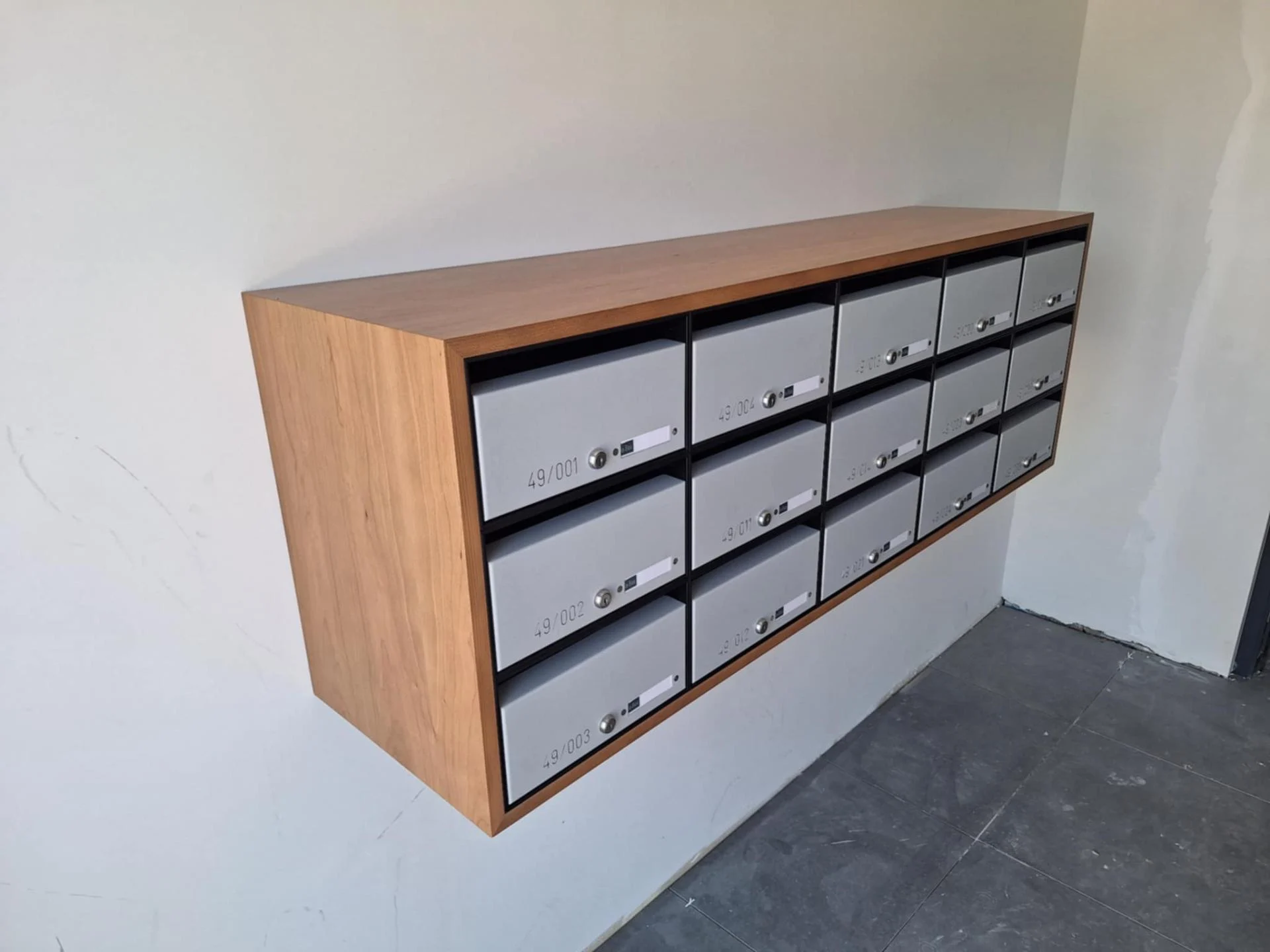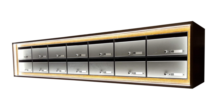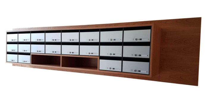 Lorsque l'espace ou la configuration de votre hall d'entrée le permet, il est toujours plus pratique d'utiliser la grande profondeur de nos modules (soit 380 mm), le courrier s'installe alors aisément bien à plat dans le volume et profite ainsi d'un maximum d'espace disponible en toute sécurité !