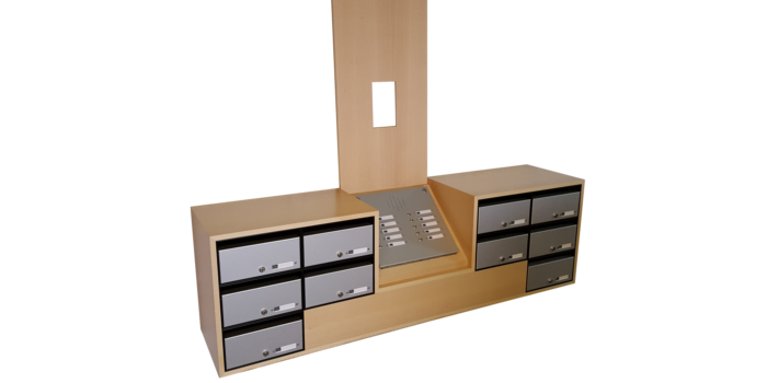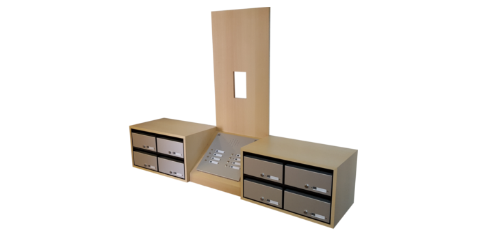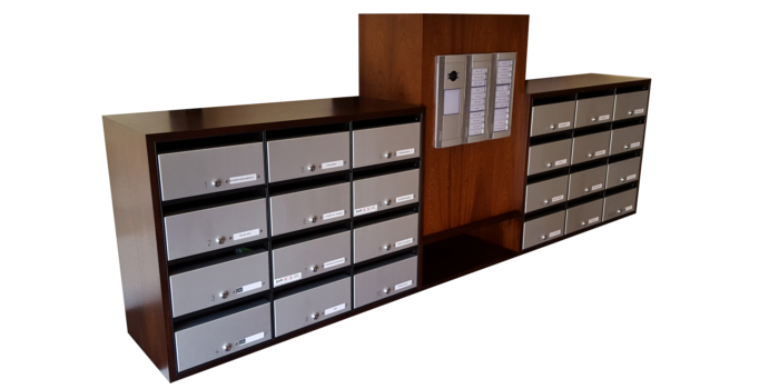 Si l'espace ou la configuration de votre hall d'entrée est plus petit, il est conseillé et plus pratique d'utiliser la petite profondeur de nos modules ( soit 230 mm), utilisant un encombrement plus restreint, le courrier s'installe alors aisément sur toute la hauteur du volume disponible !